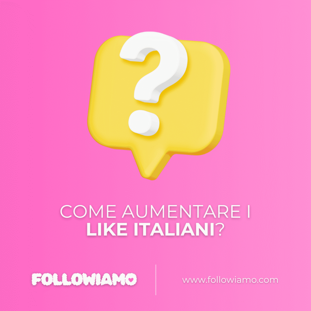 Su Followiamo.com, i like italiani provengono da utenti italiani, migliorano le tue interazioni, sono affidabile e non vengono cancellati dopo l’acquisto.